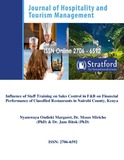 This study was to evaluate the influence of staff training on sales control in food and beverage, on the financial performance of classified restaurants in Nairobi County, Kenya. The study focused on determining the relationship between staff training in sales controlin food and beverage, on the financial performance of classified restaurants. The study used a descriptive cross-sectional survey design and adopted stratified, random sampling. The study used Fisher, Laing, and Stoeckel formula in selecting the sample of classified restaurants, while adopted purposive sampling in selecting participants. The overall response rate was 85.94 %( 110 respondents). The research instruments used were questionnaires and interview guides based on the objective and conceptual framework. The respondents comprised of food and beverage controllers, supervisors, cashiers, and managers of classified restaurants. The researcher did Pre-testing in two selected classified restaurants that were not included in the final study. Cronbach’s Alpha formula was applied for the reliability of the instruments, where a coefficient ranging from 0.65 to 1 was adequate for data analysis and reporting. The researchwasanalyzed the collected data and waspresented in the descriptive and inferential analysis. The findings of the research were presentedin graphs, tables, and pie charts. Pearson correlation analysis and simple regression procedures were usedto determine the relationship between independent variables and thedependent variable. The results of a simple regression analysis were usedto test the study hypotheses at a 5% level of significance. For Pearson’s correlation analysis, staff training had r = 0.429 (p-value = 0.039). The correlation coefficients were significant since all the p-values were less than 0.05. Results of regression analysis showed that staff training had a significant positive effect on financial performance as a unit change in staff training will increase financial performance by the rate of β = 0.921, 0.979, and 1.263. The study recommends that policy implementers should use more staff training on the use of automated and manual systems to avert fraud and theft in sales control. For practice, restaurants and the hotel industry should adopt modern technology and authorization systems staff training that minimizes fraudulent practices. Finally, subsequent studies to consider replicating this study in the unclassified restaurants in Kenya to establish the influence of staff training on sales control in food and beverage, on the financial performance of classified restaurants.